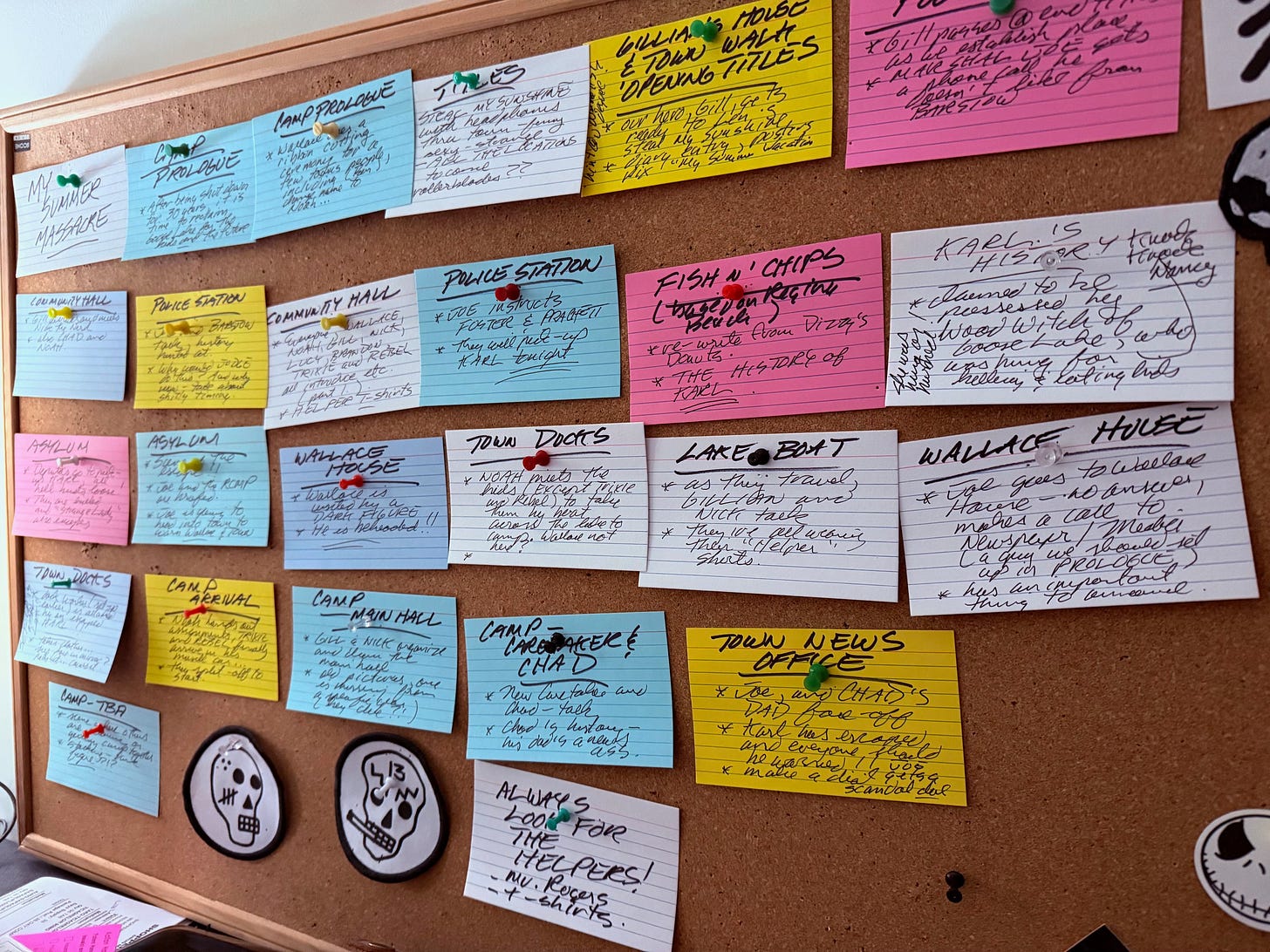 I have been fucking around with my own slasher screenplay. One I started during the pandemic on a dare from a friend. I wrote a nasty first draft in 10 days. I scrapped it and then re-outlined it. Then re-outlined it again. Then again. Now, only the title remains. Then I took walks and outlined it again in the form of recipe cards that I’ve pinned to the cork board beside my computer.