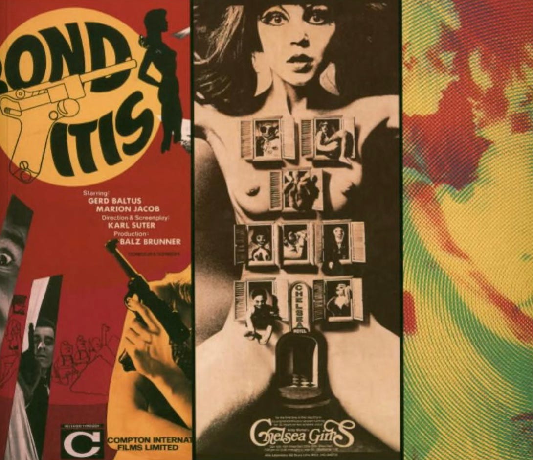 Then, in the 60s and 70s, came ‘Blaxploitation’ movies like “Shaft”, Russ Meyer’s mammary-obsessed epics like “Faster Pussycat, Kill, Kill”, and even an animated sexploitation story, “Fritz The Cat”. The posters for these films, from Alberto Vargas’ artwork for “Ladies They Talk About” (1933) to Alan Aldridge’s photomontage for Warhol’s “Chelsea Girls” (1966), are masterpieces of visual innuendo, offering, in most cases, far more that the movies actually delivered.